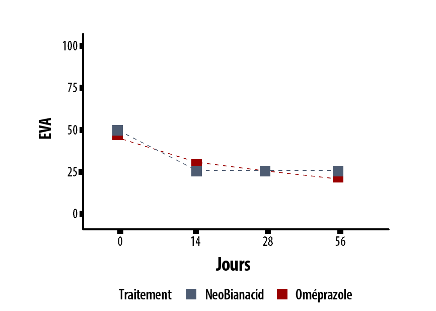 EVA (Échelle Visuelle Analogique) – Outil de mesure validé (échelle d’évaluation de 0 à 100, où 0 indique « absence de symptômes » et 100 indique « symptômes insupportables ») à travers lequel chaque patient rapporte l’intensité de la symptomatologie.